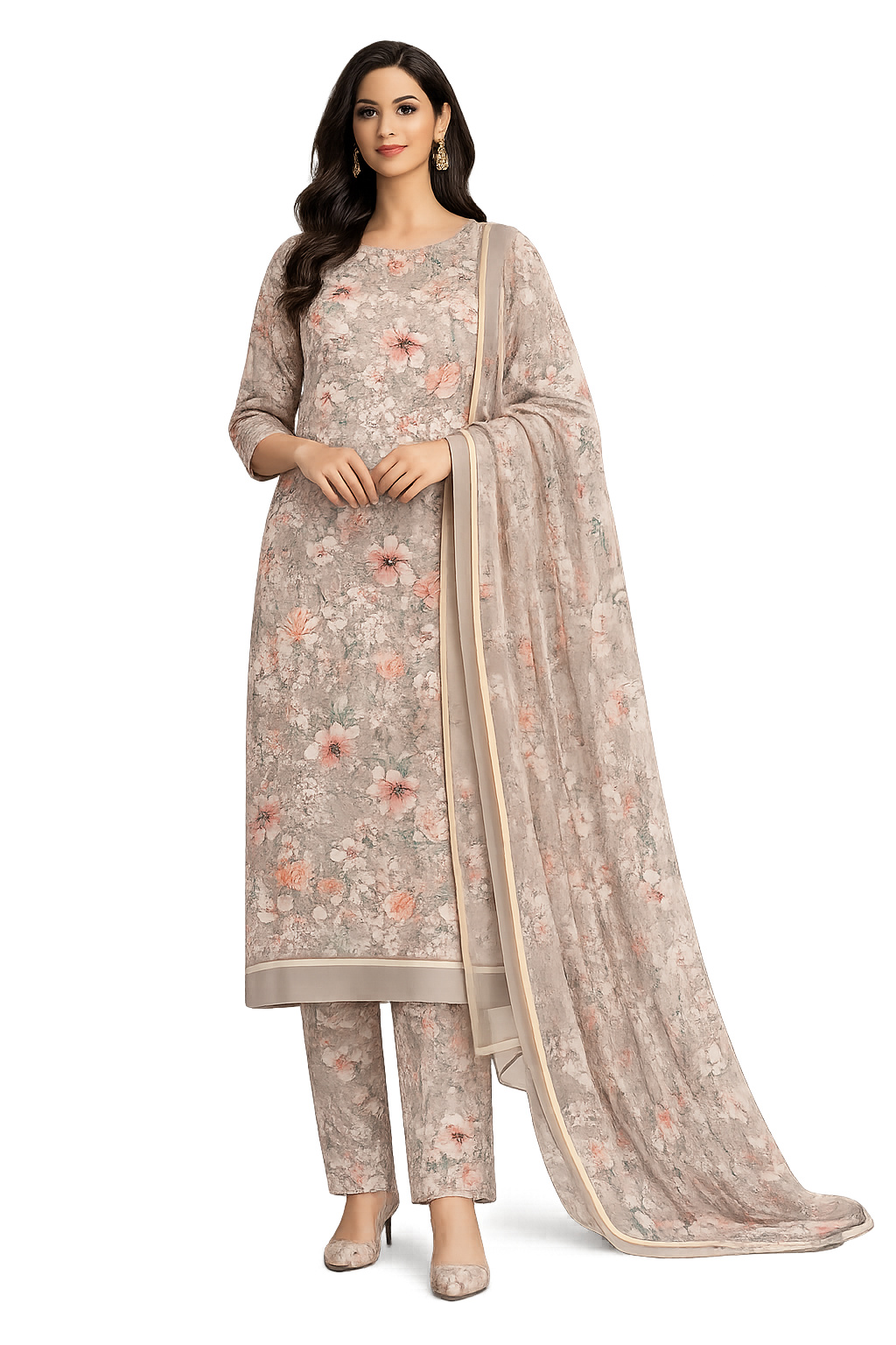 Step into effortless elegance with this unstitched 5-meter all-over printed suit crafted in soft mixed cotton fabric for breathable comfort and graceful fall. Paired with a 2.5-meter matching mixed cotton dupatta, this set blends delicate florals with soothing tones, making it perfect for daytime outings, festive gatherings, and refined everyday wear.
