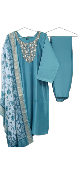 Step into elegance with this beautiful rayon three-piece Kurti Pant & Dupatta set in XXL size. The 45-inch kurti features stunning moti and cardana work on the neckline with a perfectly tailored lining for a premium finish