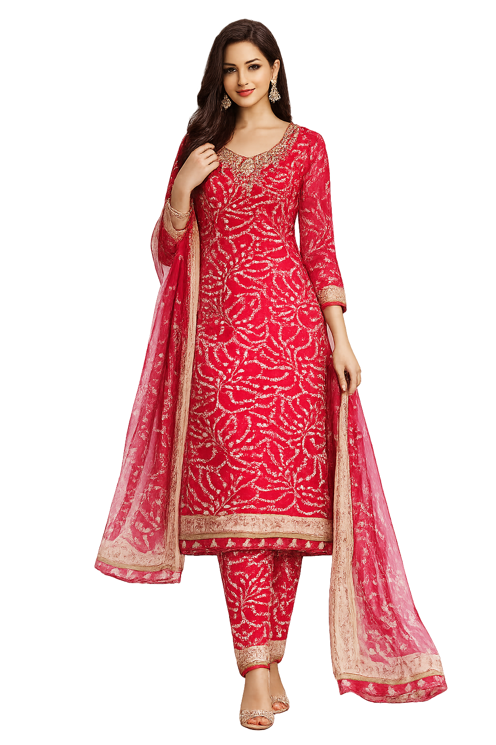 Refresh your ethnic wardrobe with this elegant 5-meter unstitched cotton all-over suit, beautifully designed with delicate patterns that add a graceful charm. The breathable cotton fabric ensures all-day comfort, while the pure printed dupatta enhances the look with its soft flow and stylish border. Perfect for casual outings or festive gatherings, this suit blends comfort with timeless traditional elegance.