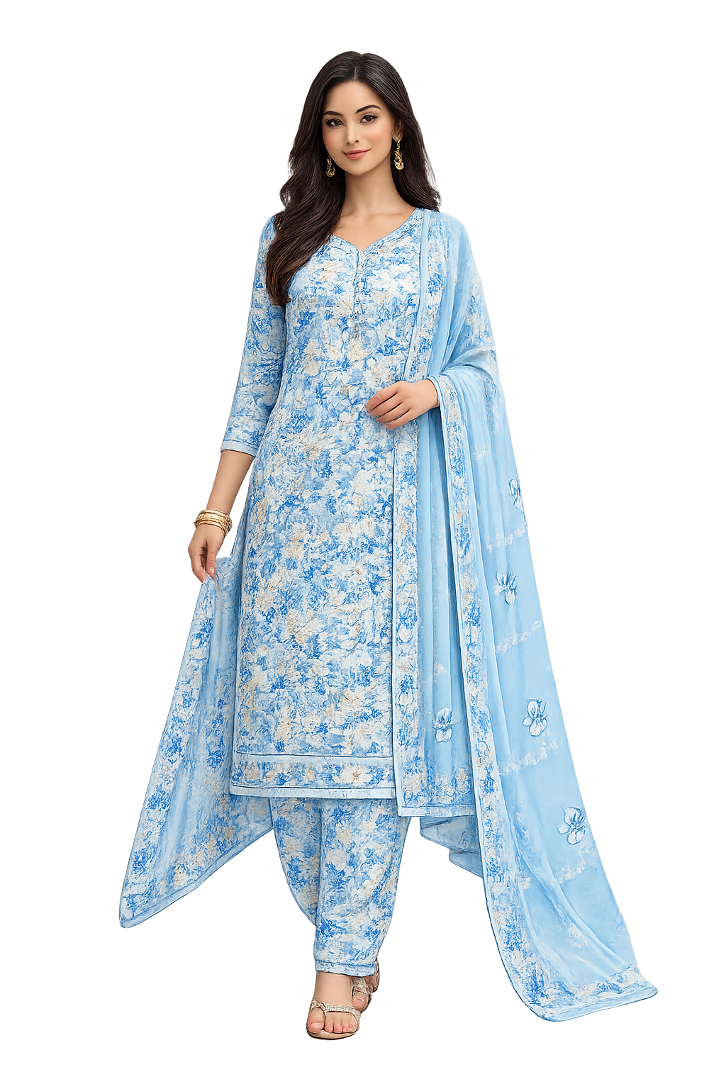 Refresh your wardrobe with this elegant unstitched 5-meter all-over printed suit crafted from soft and breathable mixed cotton fabric. The delicate floral pattern gives it a fresh and graceful appeal, perfect for everyday elegance. It comes with a beautifully coordinated 2.5-meter printed mixed cotton dupatta that enhances the overall charm. Comfortable, stylish, and easy to carry, this suit is a lovely choice for casual outings and daily wear. ✨